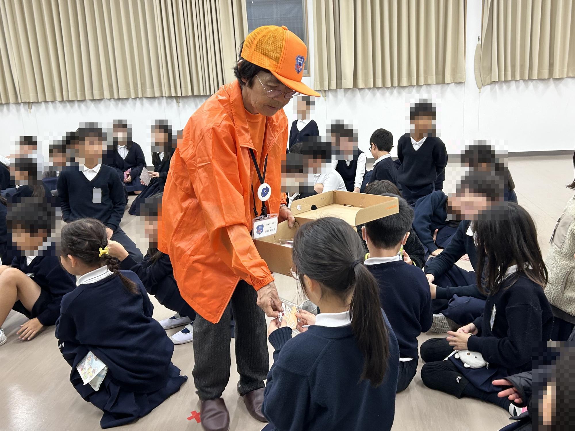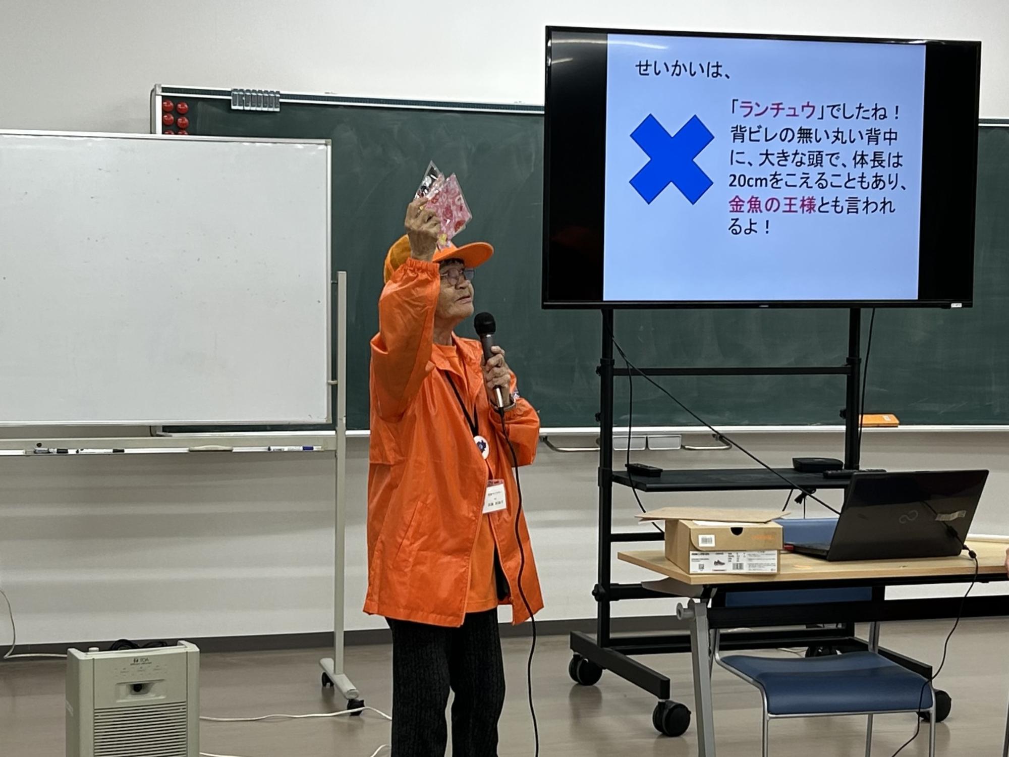 最後に、川端義治さんからは配布資料の説明と12月に金魚マイスターが開催する「クリスマススペシャルイベント」のお知らせを、灰藤さんからは金魚折り紙の配布をしていただき、出前講座は終了です。