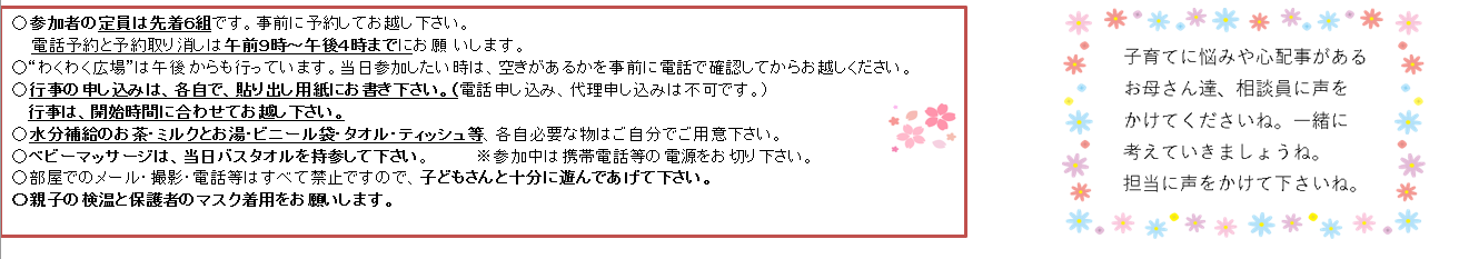 お話の会・ハローイングリッシュ・フレーベルのまりあそび・ベビーマッサージ