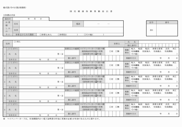 1 | 国民健康保険資格異動届出書(電算処理用) | |