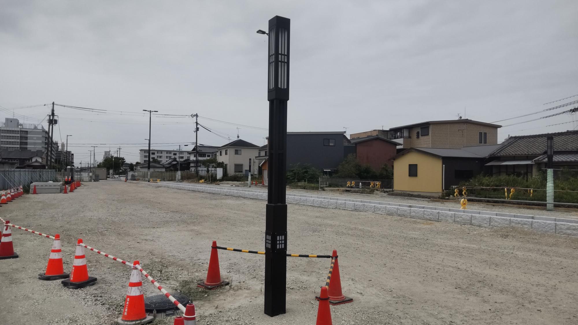 元々水路の跡地であったため地盤が軟弱であり、将来道路が沈下するのを防ぐため、地盤を固くする工事をしています。