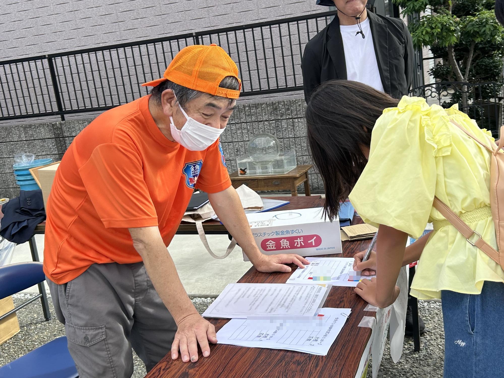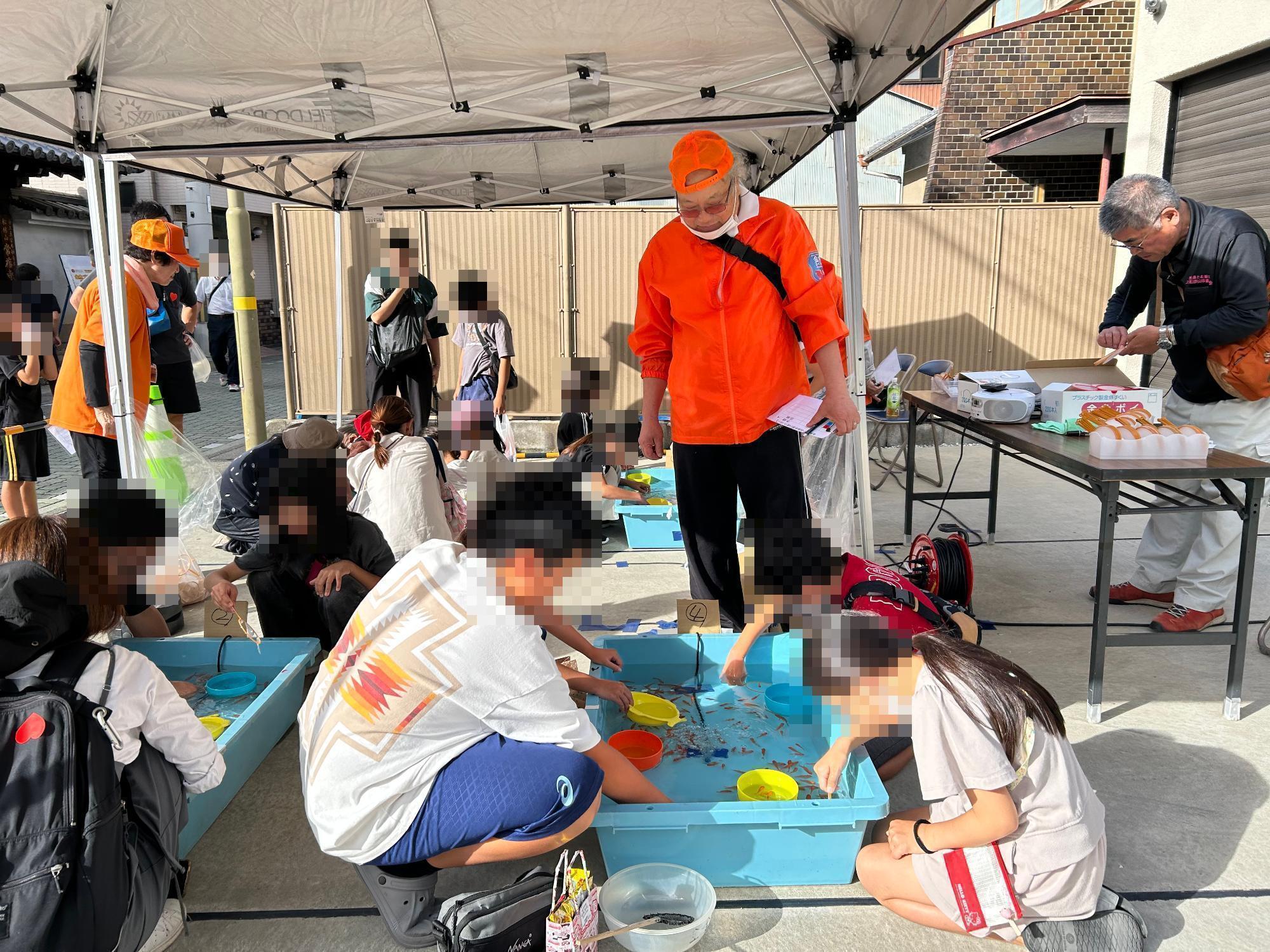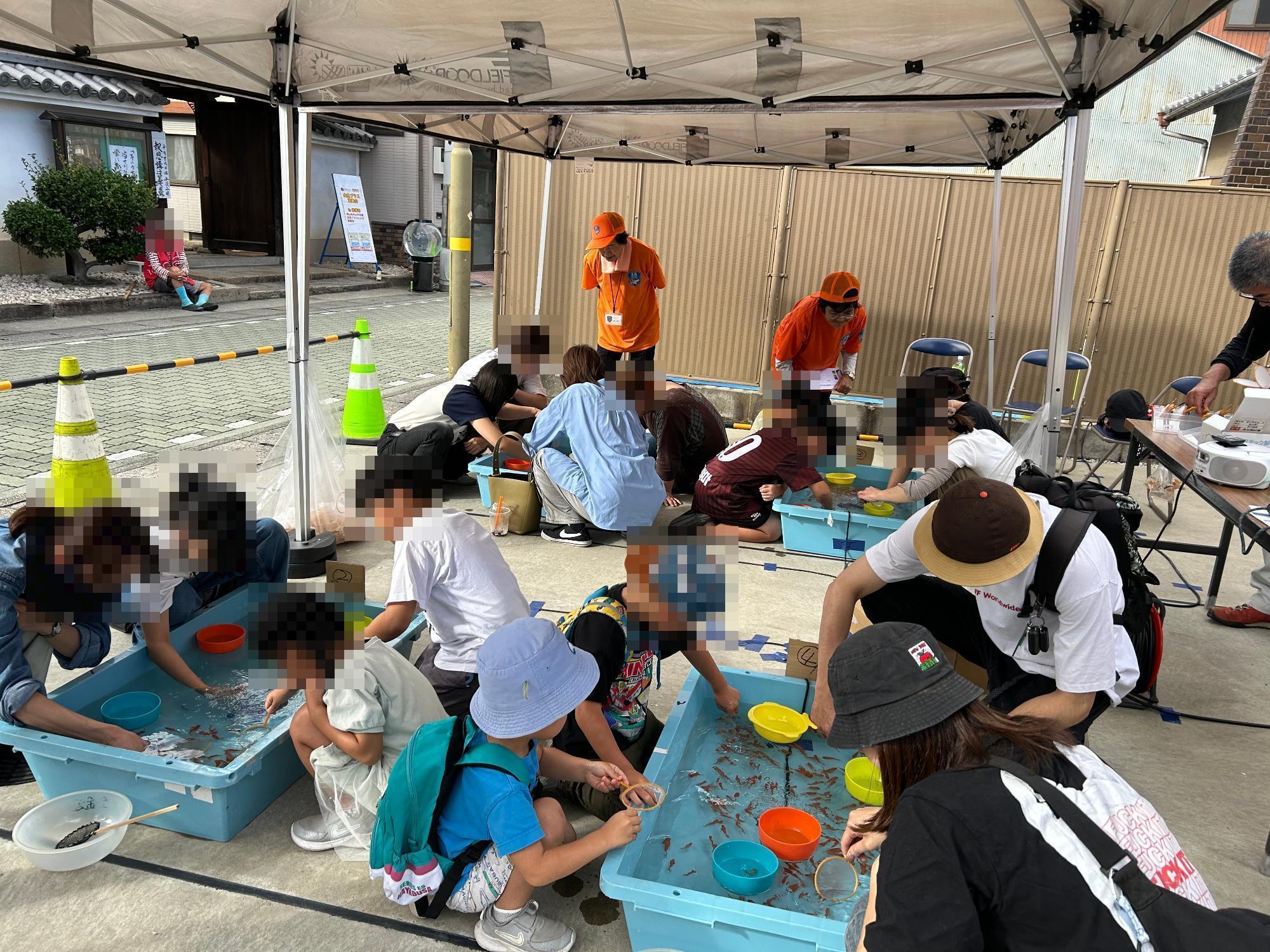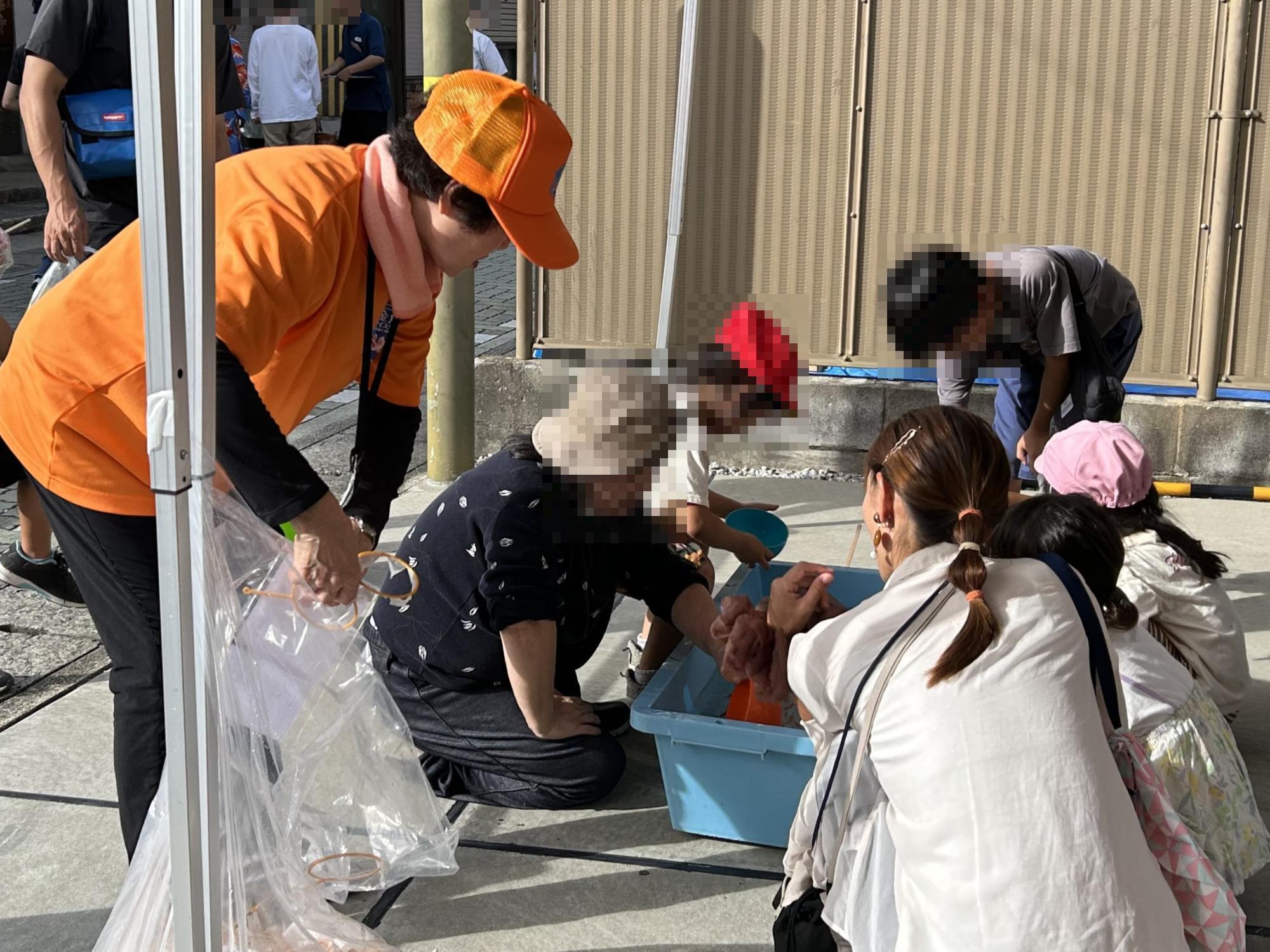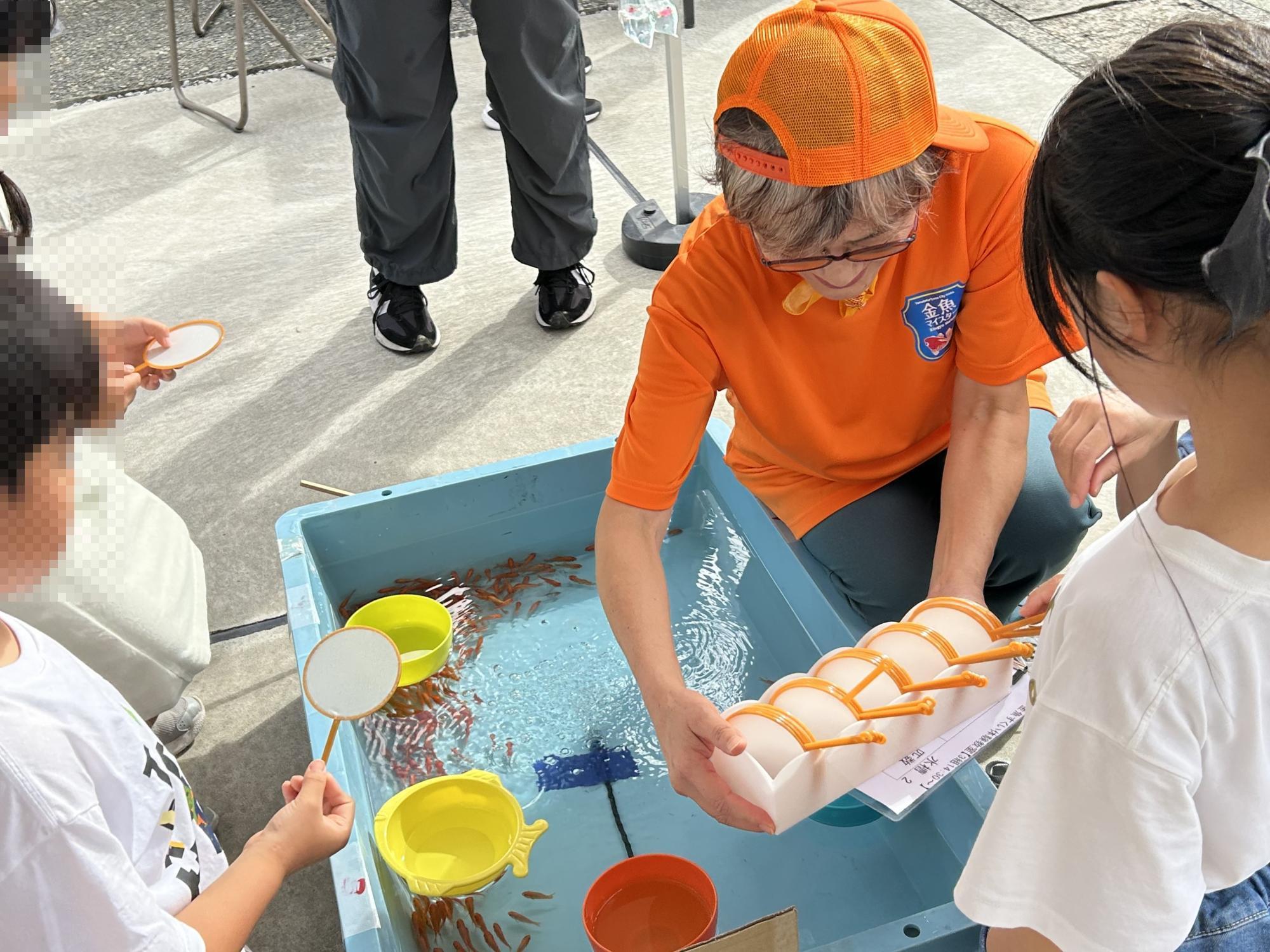 金魚マイスターからは井戸本さん、阪口さん、杉本さん、灰藤さん、芳野さんの5名が参加し、「金魚すくい体験教室」のブースを担当しました。