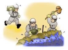 - 水防計画に基づき、水害時、河川の氾濫や決壊・浸水などから住民を守り、避難所開設や避難勧告・避難指示などの伝達を行います。